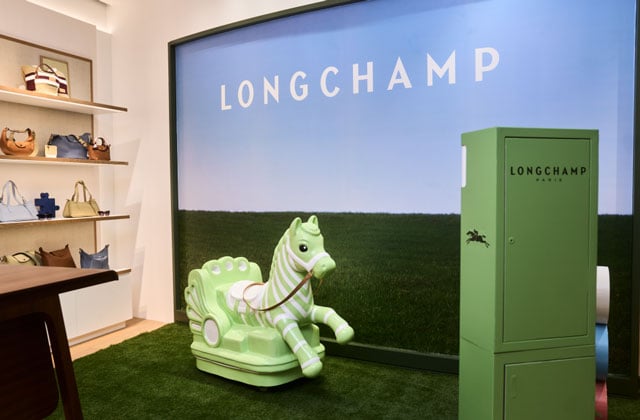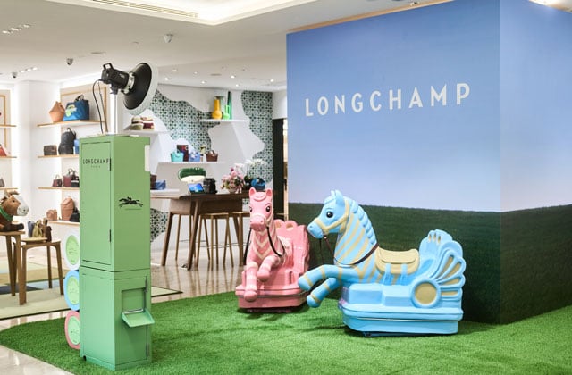 Inspired by the festive atmosphere of traditional fairs, Longchamp evokes childhood nostalgia through a whimsical rocking horse,